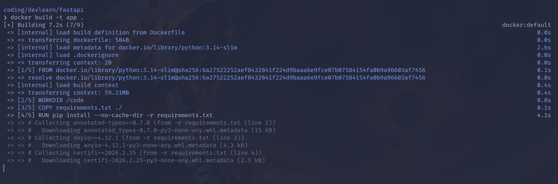 Se mudarmos o código fonte main.py, as dependências não terão que ser reinstaladas na imagem, graças à esse caching por camadas!